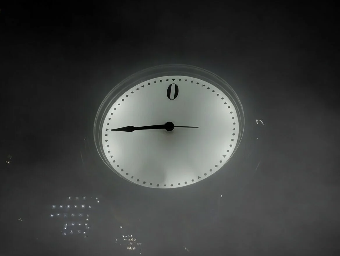 Kirk saw a massive lava lake under intense pressure, its cracked surface bulging, ready to erupt. Above it shimmered a transparent countdown clock with only a zero and one hand, ticking clockwise toward the zero with roughly 15 minutes left.